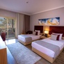 - Chambre premium familiale (45 m²). Mêmes équipements avec 1 lit double et 2 lits simple. Capacité : 3 adultes + 1 enfant.