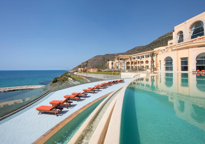 Niché entre mer Méditerranée et montagnes, le Royal Tulip Korbous Bay Thalasso & Springs incarne l'escapade de luxe par excellence. Ce véritable havre de paix offre une expérience inoubliable, où le confort et le bien-être se rencontrent dans un cadre naturel spectaculaire. L'hôtel, au design moderne et raffiné, propose des chambres élégantes, des suites spacieuses et des villas privées avec des vues à couper le souffle sur la baie ou les montagnes environnantes. Chaque détail est pensé pour offrir une atmosphère sereine et intime, idéale pour se ressourcer après une journée de détente dans le centre de thalassothérapie ou de baignade dans les piscines à eau thermale. Avec ses restaurants gastronomiques, ses espaces dédiés au bien-être et un service irréprochable, cet hôtel de prestige vous permet de savourer l'authenticité de Korbous tout en bénéficiant de tout le luxe et de la tranquillité d'un établissement haut de gamme.