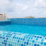 - Piscine panoramique située sur le toit de l'hôtel aménagée de chaises longues et parasols.