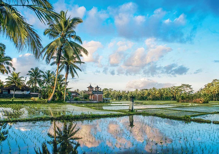 Arrivée à Denpasar. Accueil et départ pour le centre de l'île et la ville d'Ubud, cœur culturel de Bali et lieu effervescent qui abrite musées, galeries d'art et échoppes. La région d'Ubud offre également de magnifiques paysages de jungle et de rizières et est le point de départ pour découvrir quelques-uns des plus beaux temples et sites de l'île.