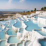 Petit déjeuner. Durant la matinée visite de Perge, ancienne capitale de la Pamphylie et site d'importance majeure sous l'Empire romain. Le stade de Perge est impressionnant par sa taille et sa conservation. En suivant la rue principale à colonnades, nous découvrirons les vestiges de boutiques et de bains, témoins du quotidien des habitants. La visite se poursuivra sur l'agora, véritable centre de vie de la cité, avant de terminer par les bains romains. Cette visite complète offre une plongée dans la grandeur passée de cette ville antique. Déjeuner en cours de route vers Pamukkale. Installation à l'hôtel avec des piscines thermales. Vous prendrez le diner et passerez la nuit dans la région de Pamukkale.