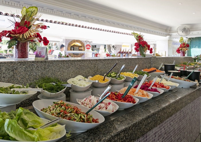 Pendant votre séjour, vous vous régalerez à Royal, l'un des 3 restaurants de cet hébergement et profiterez d'un service d'étage 24 h/24. Idéal pour une soirée cocooning pleine de saveurs ! Pour manger sur le pouce, vous trouverez aussi sur place un café. Étant donné que l'hébergement propose un bar à la plage et un bar en bord de piscine, vous pouvez vous détendre devant un verre autant de fois que vous le souhaitez. N'hésitez pas non plus à aller vous rafraîchir dans un de ses 6 bars/lounges.