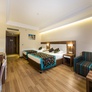 - Chambre familiale (44 m²) : mêmes équipements, 2 chambres standards communicantes par une porte. Capacité maximum : 4 adultes.
