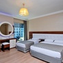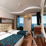 - Grande chambre standard (34 m²) : 1 lit double + 2 lits simples, mêmes équipements, balcon vue mer, jardin ou colline (selon disponibilité) . Capacité maximum : 2 adultes + 2 enfants (+ lits d'appoint)