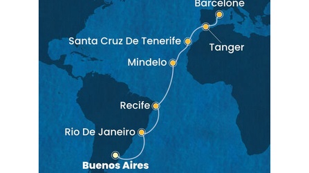 Argentine, Brésil, Cap Vert, Canaries, Maroc, Espagne à bord du Costa Favolosa