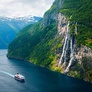 Traversée en ferry de Molde à Vestnes. Trajet vers Linge et traversée en ferry jusqu'à Eidsdal. Passage par la "Route des Aigles" et arrivée à Geiranger, petit village blotti au fond du fjord. Déjeuner. Départ pour une magnifique croisière sur le Geirangerfjord, le plus encaissé de Norvège aux nombreuses cascades. Passage par Stryn, centre de ski d'été et continuation vers Skei. Dîner logement.