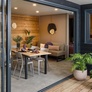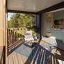 Terrasse couverte avec mobilier de jardin en bois