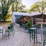 - Terrasse en bois semi-couverte avec salon de jardin.