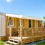 - Logement en Mobil Home Comfort 3 chambres (28 m²) : + terrasse surélevée de 18 m², 3 chambres (1 avec 1 lit double (140 ou 160x190), 2 avec 2 lits simples (70 ou 80x190) ou 2 lits superposés), TV, climatisation.