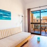 - Chambre standard vue mer (30 m²) : 2 lits simples. coin salon équipé d'un canapé et table basse, fauteuils coin bureau, salle de bain avec petite baignoire ou douche, sèche-cheveux, mini-réfrigérateur (vide), télévision écran plat., Wi-fi, balcon ou terrasse vue mer. Capacité maximum : 2 adultes + 2 enfants.