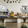 - Espace salon avec bibliothèque et service de café et thé