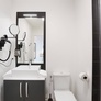 Salle de bain avec douche, sèche-cheveux, sèche-serviettes