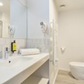 Salle de bains avec douche, sèche-cheveux, sèche-serviettes