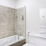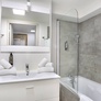 Salle de bain avec baignoire ou douche, sèche-cheveux, sèche-serviettes