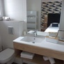 - Salle de bains avec douche, sèche-cheveux et toilettes.