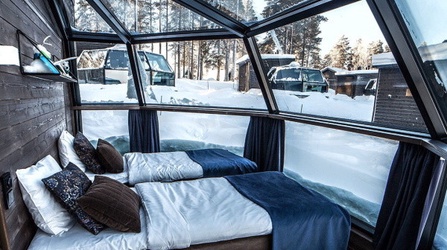 - des paysages magiques dans le cercle polaire, lors d’un séjour cosy dans un hôtel ou dans un igloo de verre