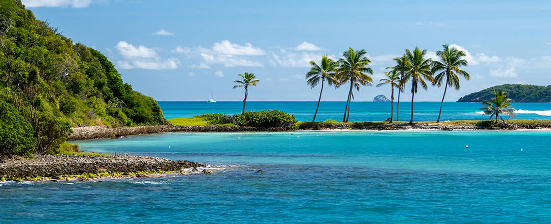 Merveilleux parc de navigation à la voile, l'archipel des Grenadines se prête parfaitement aux croisières en catamarans. La mer est turquoise, les fonds marins poissonneux.