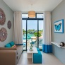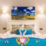 - Chambre deluxe vue mer (35 m²) : mêmes équipements, vue mer. Capacité : 2 adultes + 2 enfants.