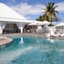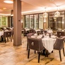 Restaurant principal avec service en salle ou en terrasse, face à la piscine.