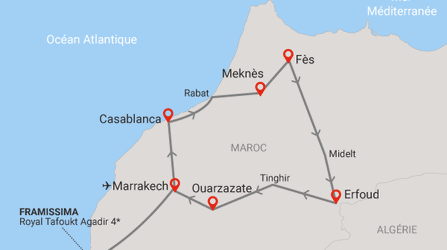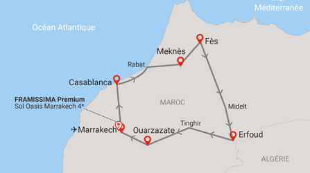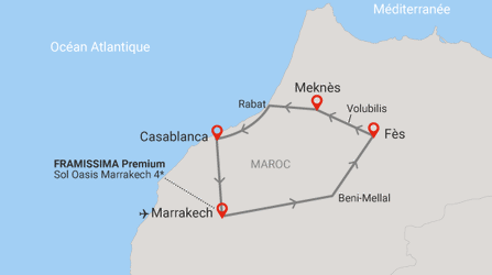 Circuit Richesses des villes impériales au grand sud marocain + extension Framissima Premium Sol Oasis 4* 7 nuits
