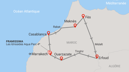 Circuit Richesses des villes impériales au grand sud marocain + extension Framissima Idrissides Aqua Parc ****