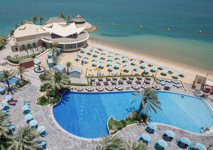 Bienvenue au Hilton Doha 5* ! Idéalement situé en bord de mer, le long de la Corniche, cet hôtel 5 étoiles vous invite à profiter d'une plage privée aux eaux turquoise exclusive. Arborant une décoration à la fois colorée et épurée, l’hôtel fusionne harmonieusement le confort avec la modernité. Après une journée d’explorations dans la ville de Doha, rafraichissez-vous au bord de la magnifique piscine extérieure, vous donnant d’incroyables vues sur la mer. Vous pourrez aussi vous relaxer à l’espace Spa et bien-être avec les nombreux soins et massages.